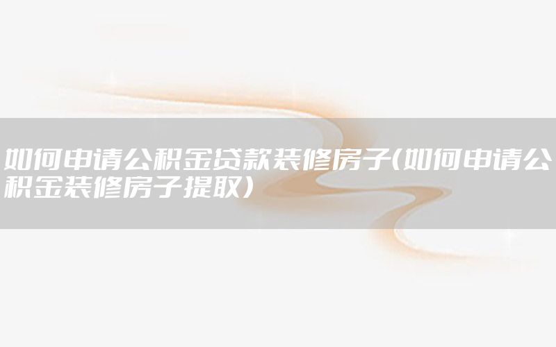 到此,以上就是小編對于如何申請公積金**裝修房子的問題就介紹到這了,希望介紹關(guān)于如何申請公積金**裝修房子的3點解答對大家有用。