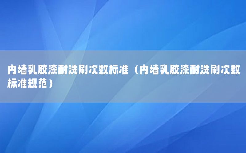 本篇文章給大家談?wù)剝?nèi)墻乳膠漆耐洗刷次數(shù)標(biāo)準(zhǔn),以及內(nèi)墻乳膠漆耐洗刷次數(shù)標(biāo)準(zhǔn)規(guī)范對(duì)應(yīng)的知識(shí)點(diǎn),希望對(duì)各位有所幫助,不要忘了收***本站喔。 今天給各位分享內(nèi)墻乳膠漆耐洗刷次數(shù)標(biāo)準(zhǔn)的知識(shí),其中也會(huì)對(duì)內(nèi)墻乳膠漆耐洗刷次數(shù)標(biāo)準(zhǔn)規(guī)范進(jìn)行解釋,如果能碰巧解決***現(xiàn)在面臨的問題,別忘了關(guān)注本站,現(xiàn)在開始吧!
