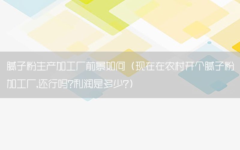 本篇文章給大家談?wù)勀佔(zhàn)臃凵a(chǎn)加工廠前景如何,以及現(xiàn)在在農(nóng)村開個(gè)膩?zhàn)臃奂庸S,還行嗎?利潤是多少?對應(yīng)的知識(shí)點(diǎn),希望對各位有所幫助,不要忘了收***本站喔。 今天給各位分享膩?zhàn)臃凵a(chǎn)加工廠前景如何的知識(shí),其中也會(huì)對現(xiàn)在在農(nóng)村開個(gè)膩?zhàn)臃奂庸S,還行嗎?利潤是多少?進(jìn)行解釋,如果能碰巧解決***現(xiàn)在面臨的問題,別忘了關(guān)注本站,現(xiàn)在開始吧!